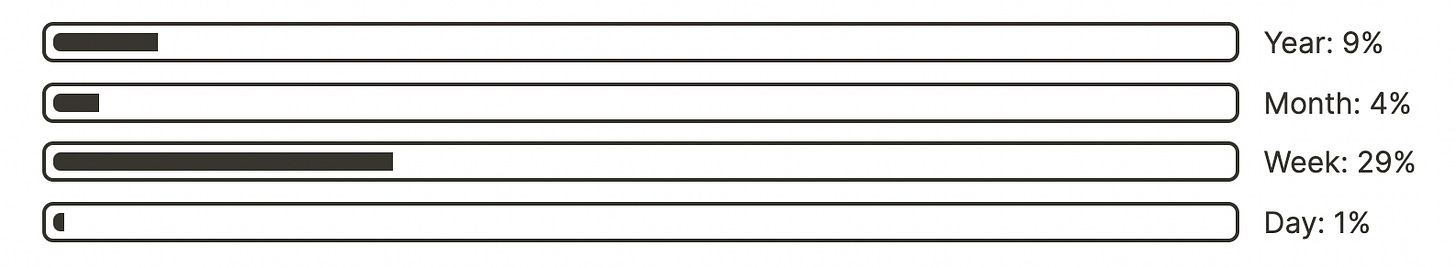 これはnotionのウィジェットなのですが、実は「Life」の線も出せる仕様になっていました。さすがにちょっと勇気がなかったので、私は表示しておりません。いやー、人生の終わりを何歳に設定して今を生きるのかなんて、おいそれと考えられませんよね…。もしかしたら早くあの世に行くかもしれないし、すんごい長生きするかもしれません。そのあたりの人生設計、みなさんどうされているのでしょうか。