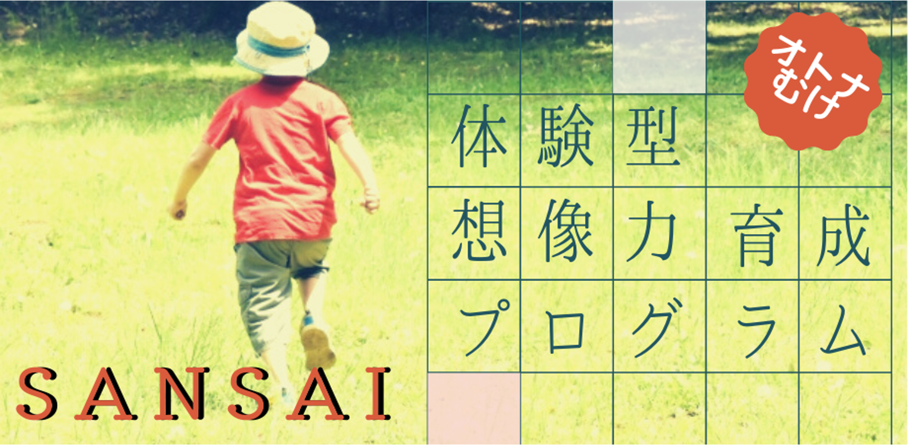 体験型想像力育成プログラムSANSAIは、自分の中にある3才の頃の<あの感覚>を取り戻していただき、