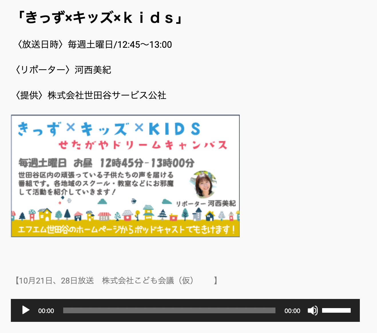 先日の株式会社こども会議(仮)の音楽会のあと、FM世田谷の方が取材にいらしてくださいました。その模様がオンラインでも聴けるようになりましたので、みなさま方にもシェアいたします。